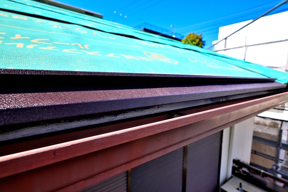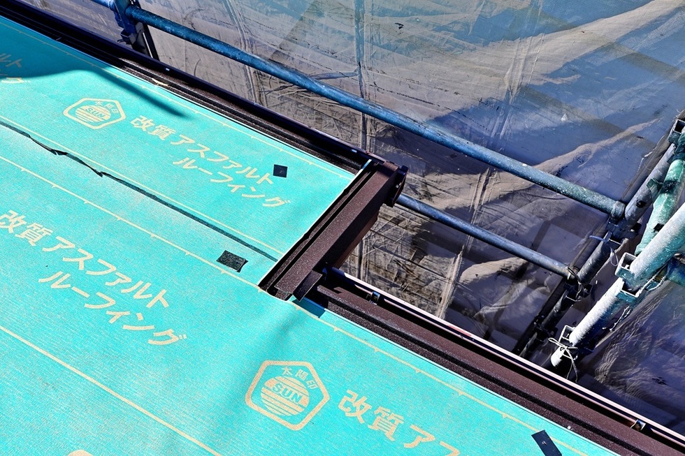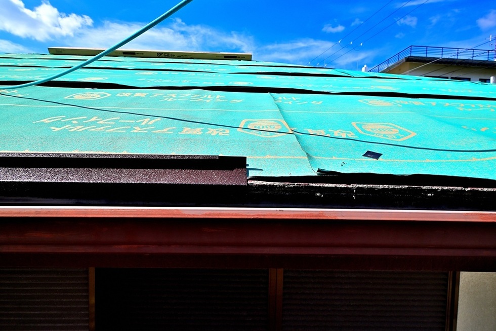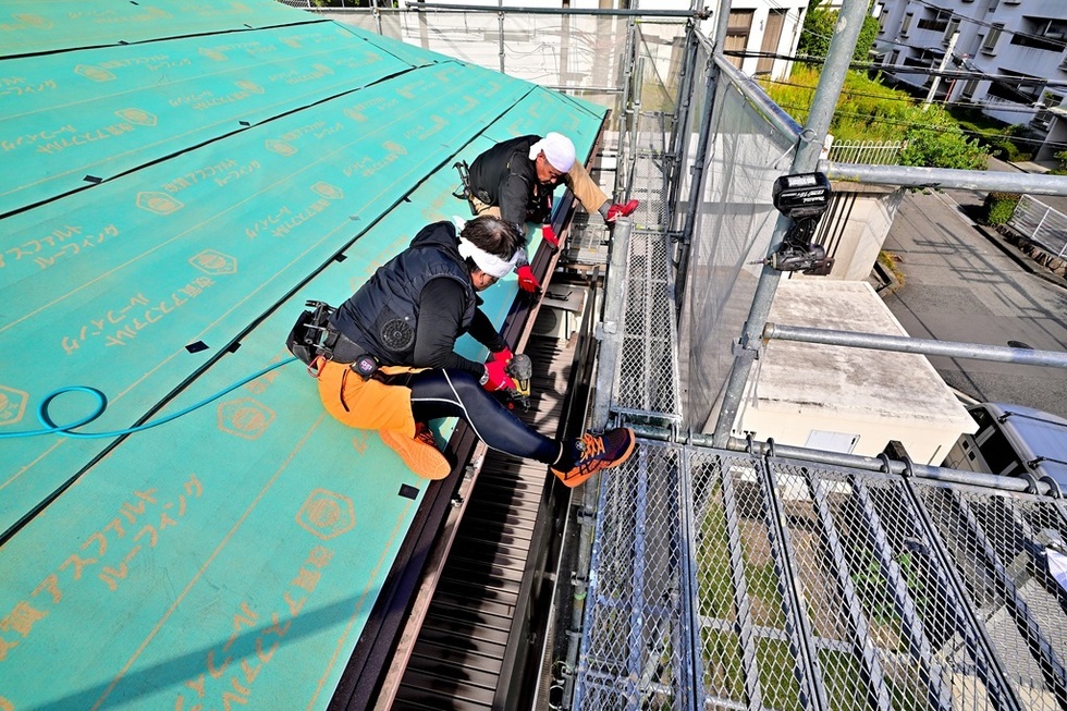 本日の作業は、芦屋市でカラーベスト屋根の上に新し金属瓦のスーパーガルテクトを葺くカバー工法の板金工事です。