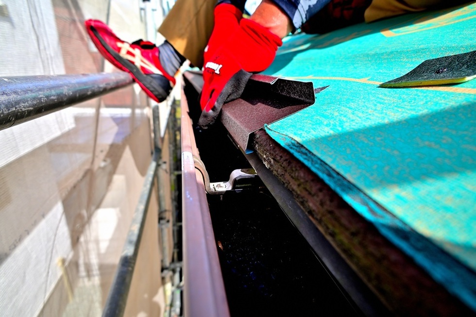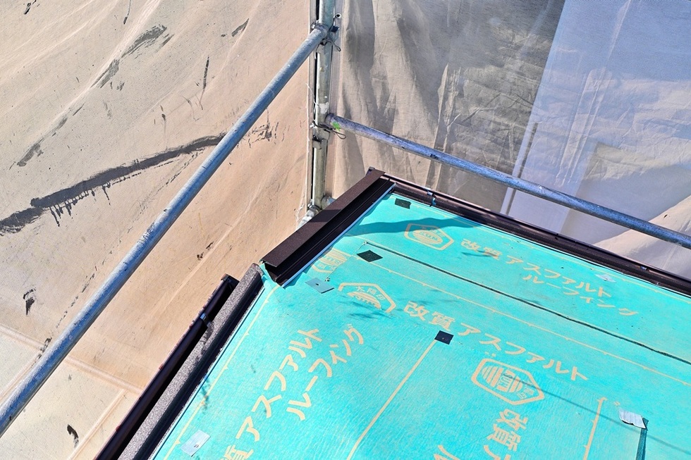 軒先のセットバックスターターとケラバの水切り板金の施工です。