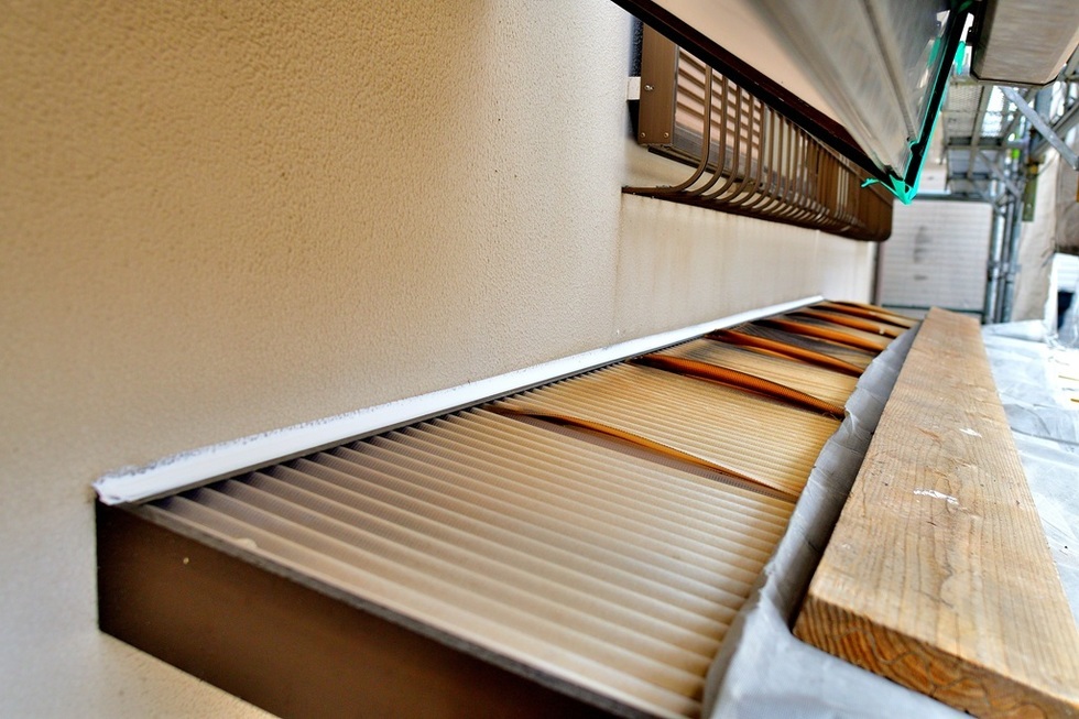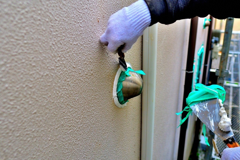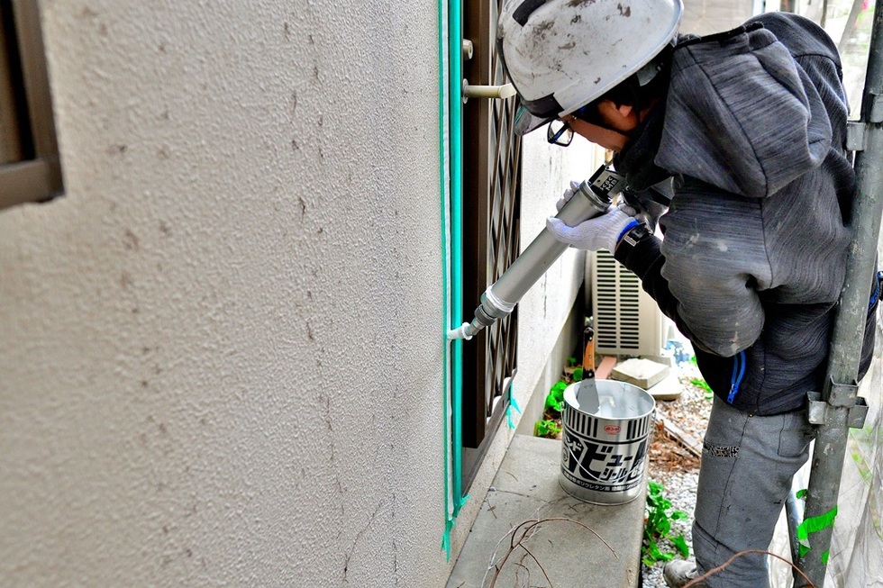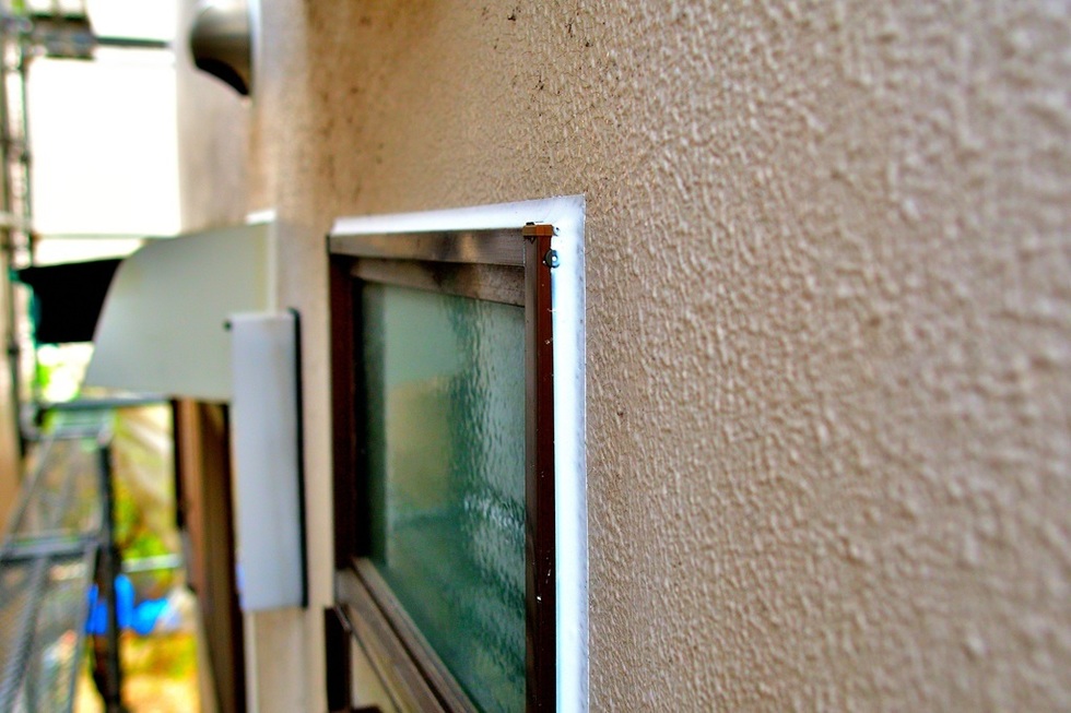 モルタル外壁の場合、振動や長年の柱の捻じれなどで建物が歪み、開口部や貫通部などのモルタル取り合いに隙間が出来る場合があります