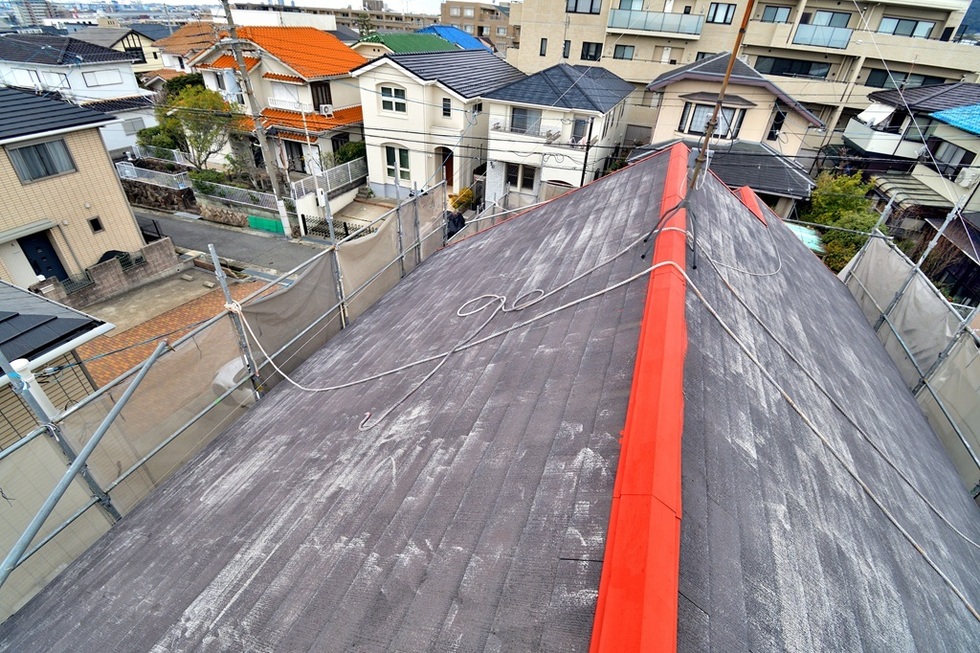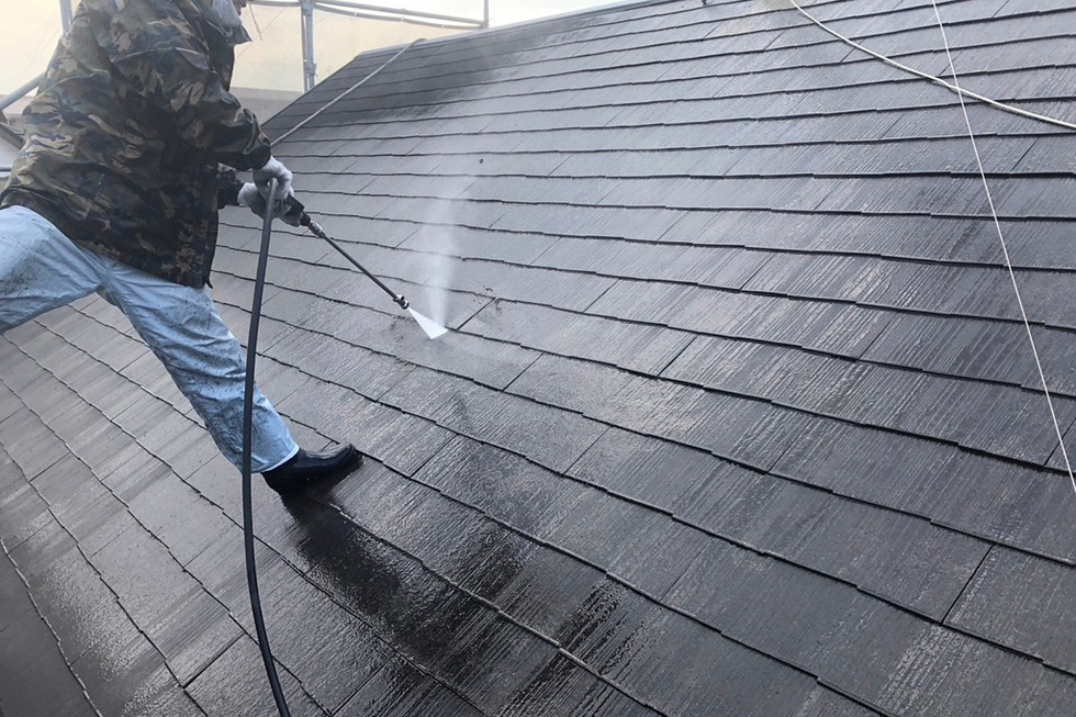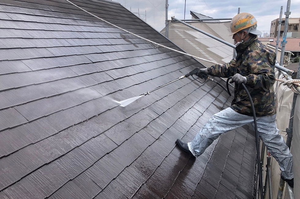 高圧洗浄は屋根塗装で最も大事な工程で、旧塗膜などが残ると塗膜剥離の原因になる場合があります。